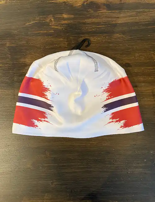 Lue med Norsk flagg på begge sider. I midten har vi laget plass til din logo eller navn