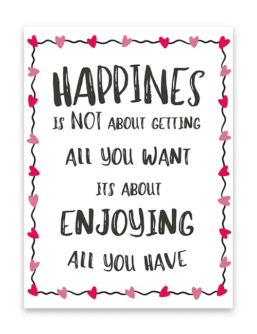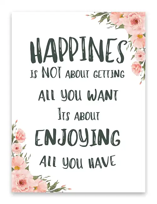 Happines is not about getting all you want, its about enjoying all you have